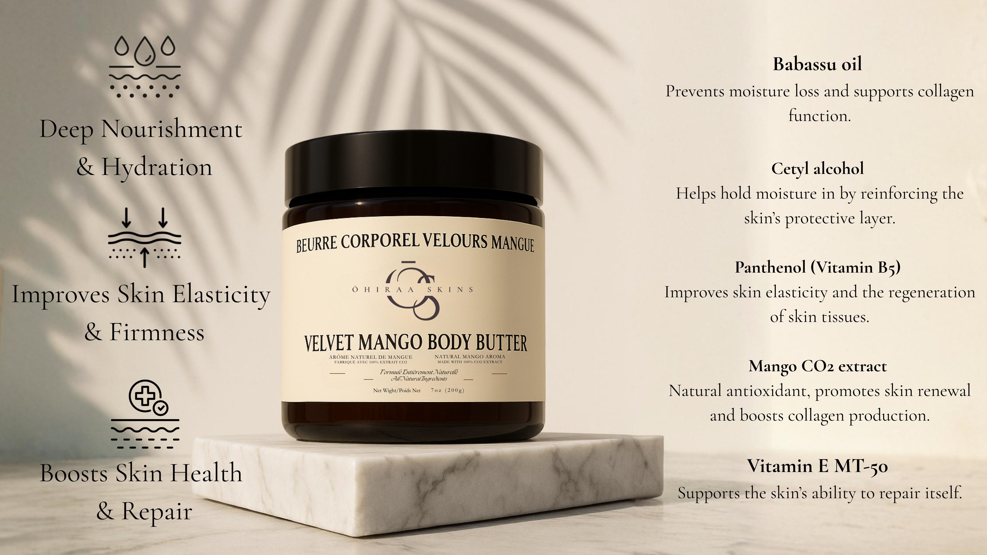 Crafted with rich mango butter, hydrating hazelnut oil, and deeply moisturizing babassu oil, this ultra-hydrating formula melts into your skin.